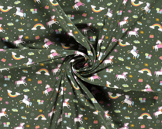 Cotton Jersey Christmas Unicorns