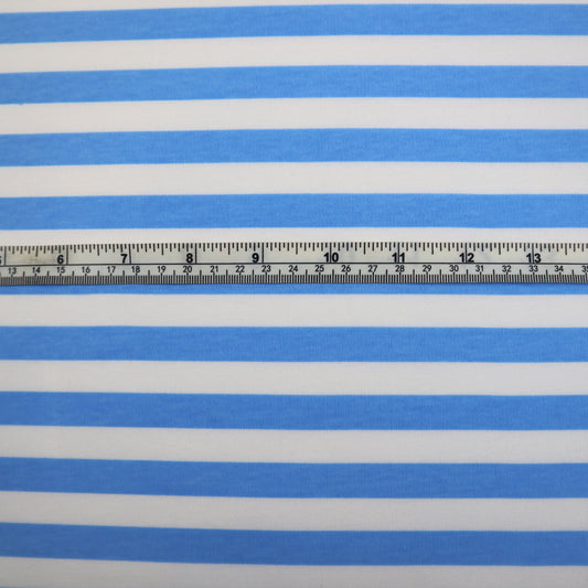 Cotton Jersey in Blue and White Thick Stripes
