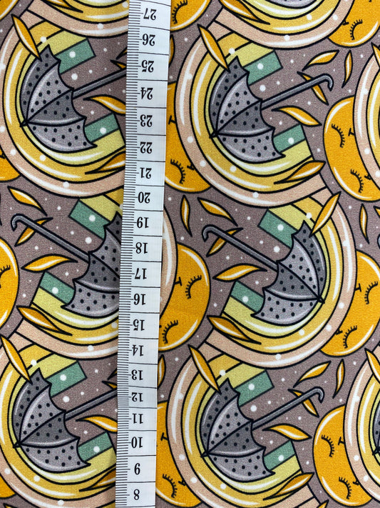 SALE Cotton Jersey Rainbow and Umbrellas