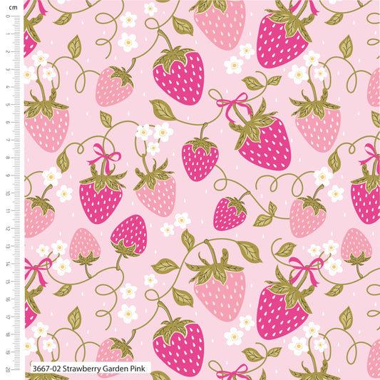 100% Cotton Strawberry Garden Pink - Sweet Blooms From The Crafty Pie