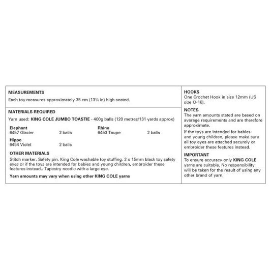 King Cole 9222 Dinosaurs Crochet Pattern - Toastie