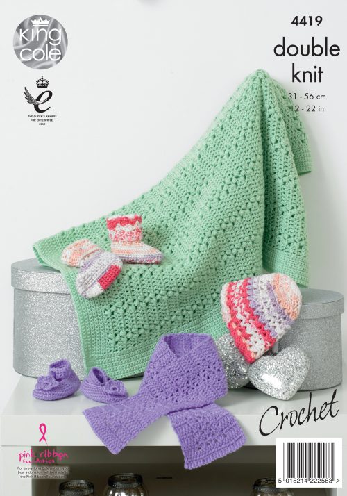 King Cole 4419 Crochet Hat, Scarf, Shoes, Socks & Blanket