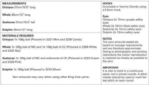 King Cole 9076 Crochet Sea life Animals - Yummy
