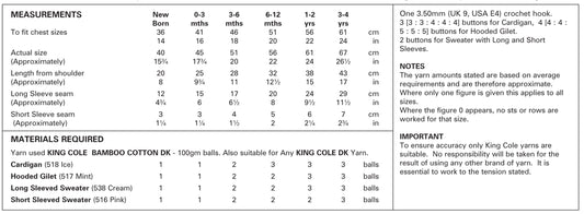 King Cole 3478 Crochet Cardigan, Hooded Gilet , Long and Short Sleeved Sweater