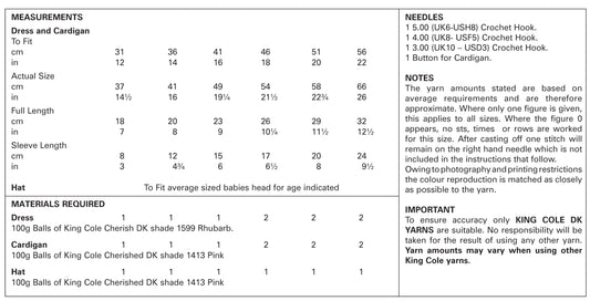 King Cole 4416 Crochet Dress, Cardigan and Hat