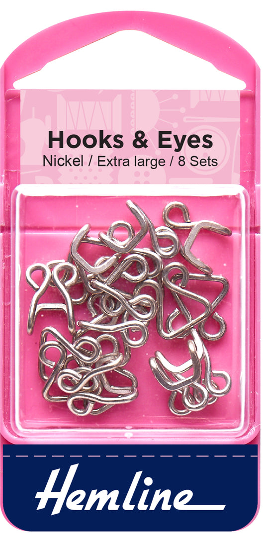 Hemline Hooks & Eyes Size 13 -Nickel - 8 Sets~