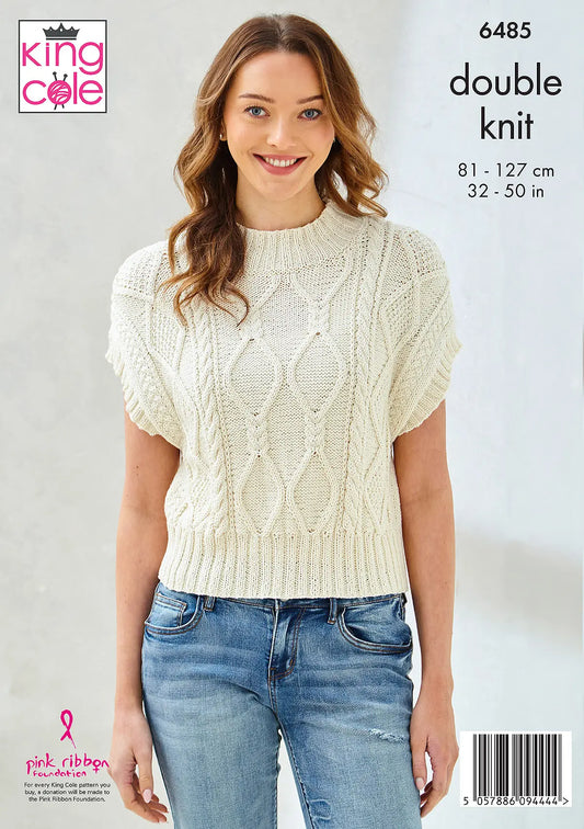 King Cole Knitting Pattern 6485 Sweater and Slipover - Double Knitting