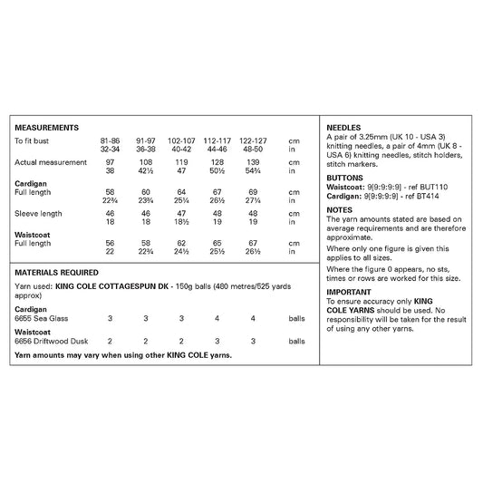 King Cole 6483 Cardigan and Waistcoat - Double Knit