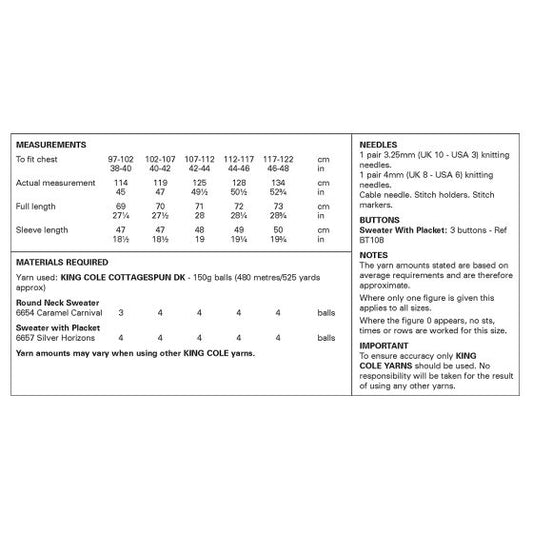 King Cole 6476 Sweaters - Double Knit