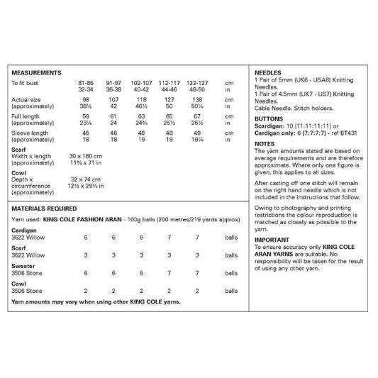 King Cole 6502 Scardigan and Sweater with Cowl - Aran