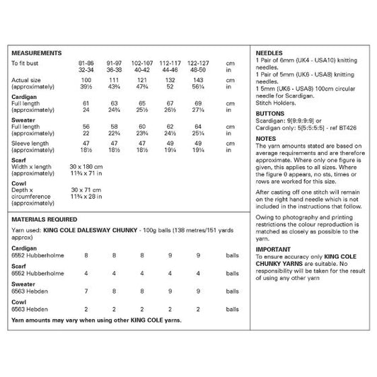 King Cole Knitting Pattern 6478 Chunky