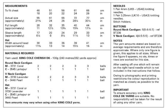 James C Brett JB398 Knitting Pattern