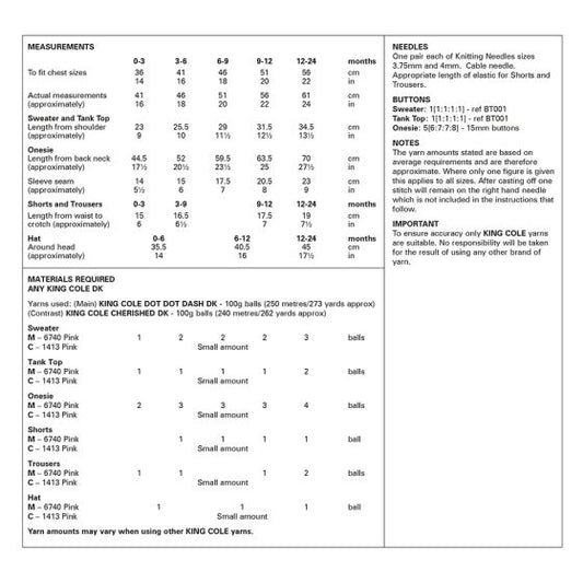 King Cole Baby Knitting Pattern 6540 Double knitting