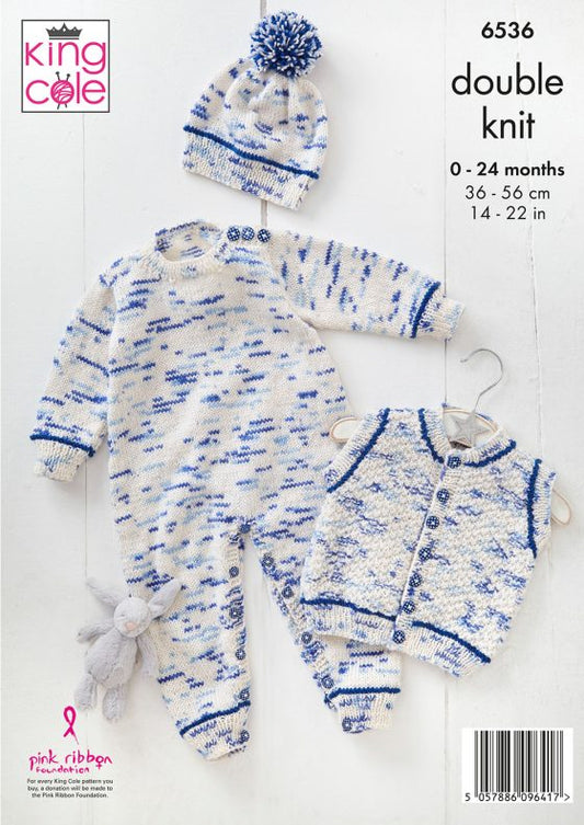 King Cole Baby Knitting Pattern 6536 Double knitting