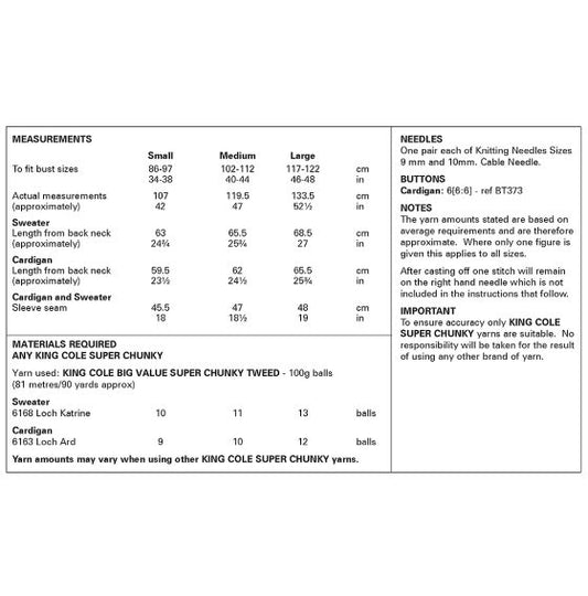 King Cole Knitting Pattern 6362 Super Chunky Sweater and Cardigan