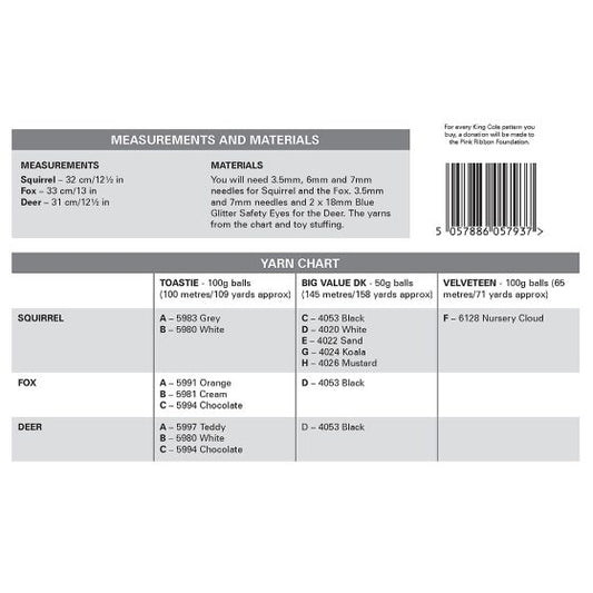 King Cole 9212 Woodland Wildlife - Knitting Pattern Fox, Squirrel and Deer - Toastie