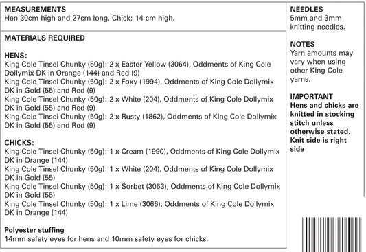 King Cole 9064 Hens and Chicks Knitting Pattern