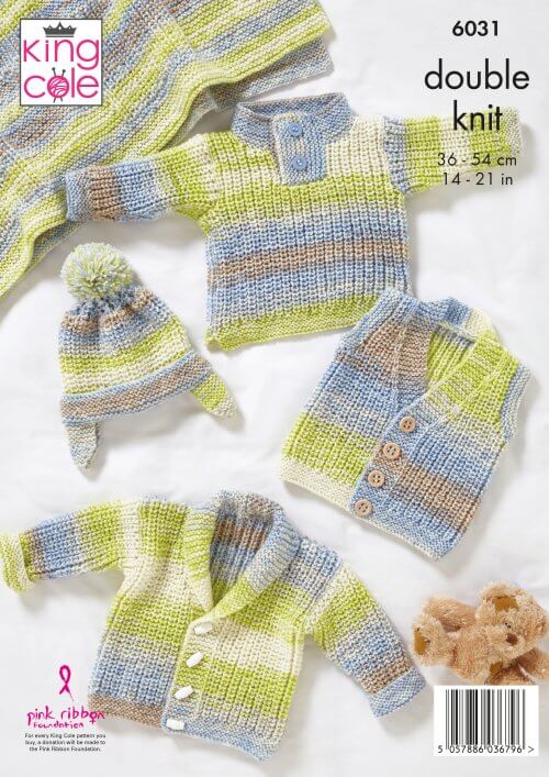 King Cole 6031 Jacket, Gilet, Sweater, Hat & Blanket