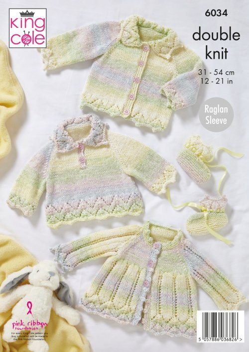 King Cole 6034 Overtop, Cardigan, Matinee Jacket & Bootees