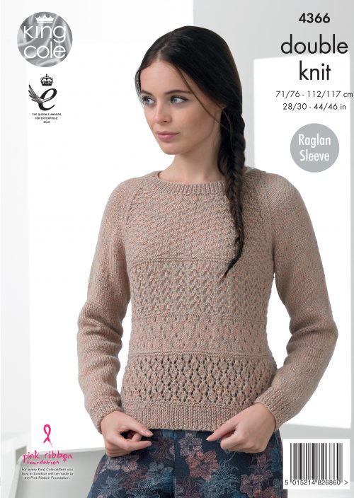 King Cole 4366 Ladies Raglan Sweater and Cardigan Double Knit