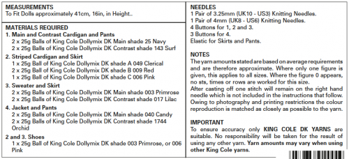 King Cole 5571 Dolls Clothes (16") Double knit