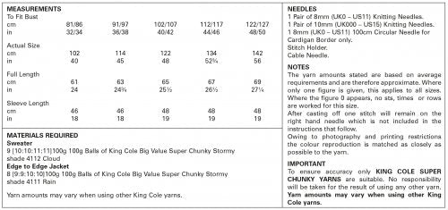 King Cole 5836 Edge to Edge Jacket and Sweater - Super Chunky