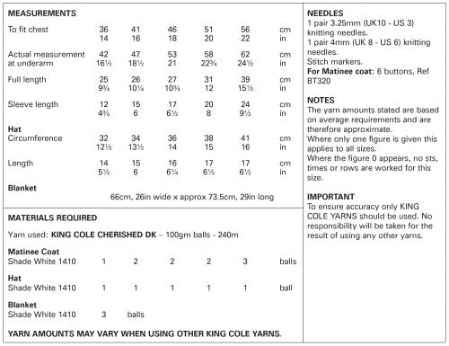 King Cole 5927 Matinee Coat ,Hat and Blanket Double Knit