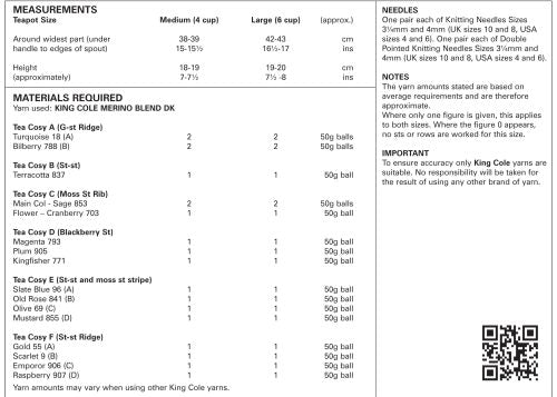 King Cole 9014 Teapot Cosies Double knit