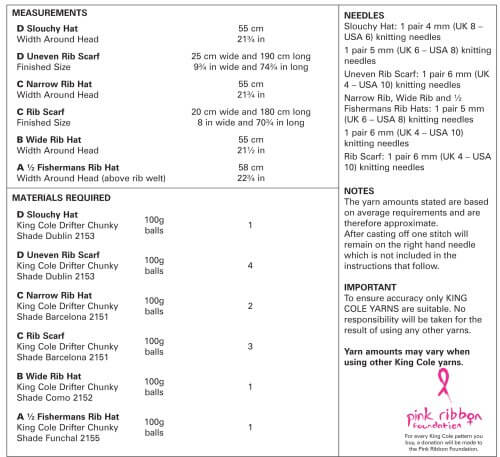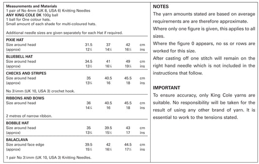 King Cole 4608 Hat and Scarves Pattern