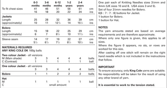 King Cole 2985 Jackets, Hat and Bolero