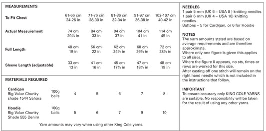 King Cole 4088 Cardigan and Hoodie Pattern