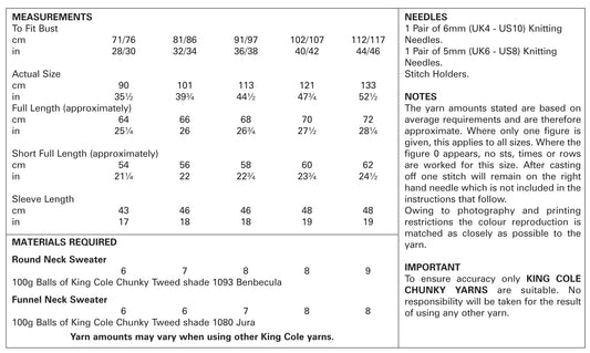 King Cole 5289 Sweater Pattern