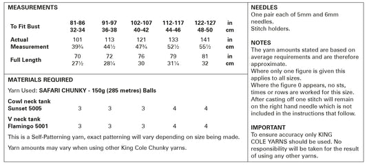 King Cole 5931 Ladies Cowl and V-neck Tank