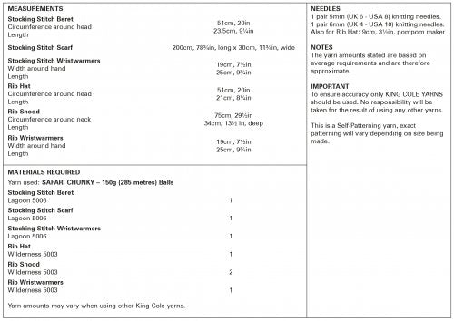 King Cole 5936 Hat, Wrist Warmers, Snood and Scarve Pattern