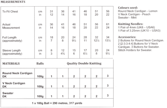 UKHKA 190 Baby Sweater and Cardigan - Prem-22"