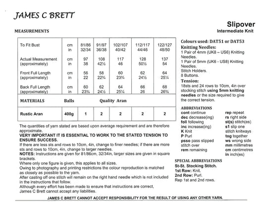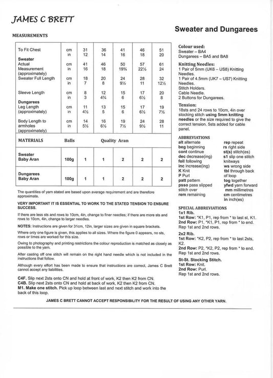 James C Brett JB554 Knitting Pattern