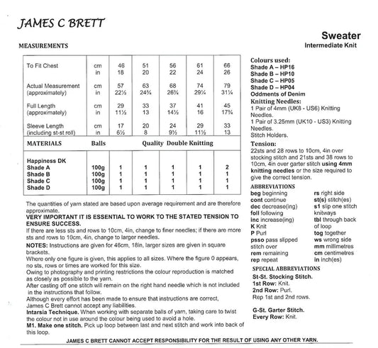 James C Brett JB222 Knitting Pattern