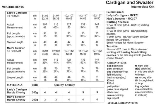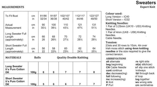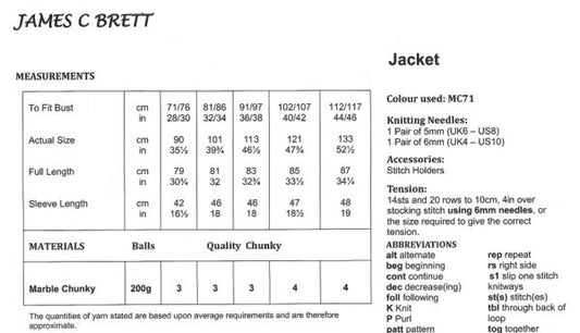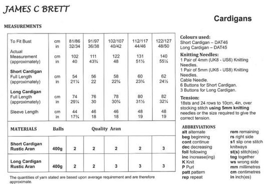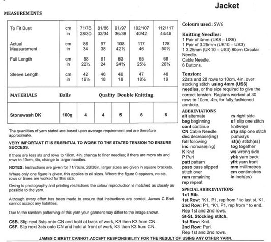 James C Brett JB595 Knitting Pattern