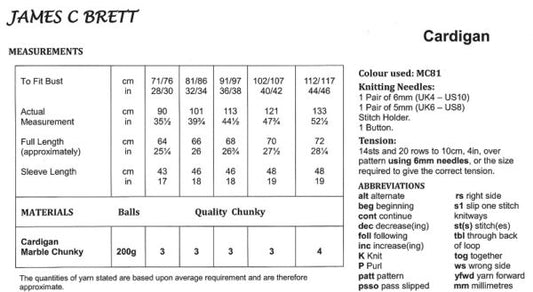 James C Brett JB891 Knitting Pattern