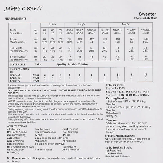 James C Brett JB438 Knitting Pattern