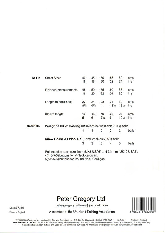 Peter Gregory Knitting Pattern 7210 Double Knitting