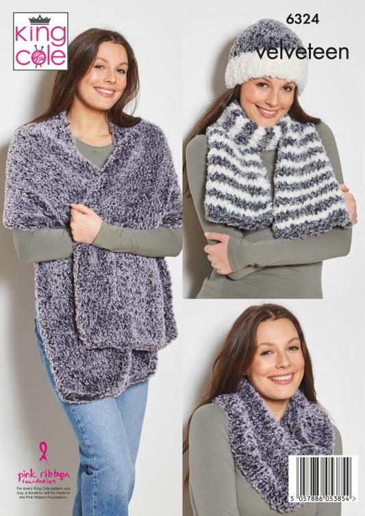 King Cole Knitting Pattern Cardigan, Scarf, Hat and Handwarmers 6318
