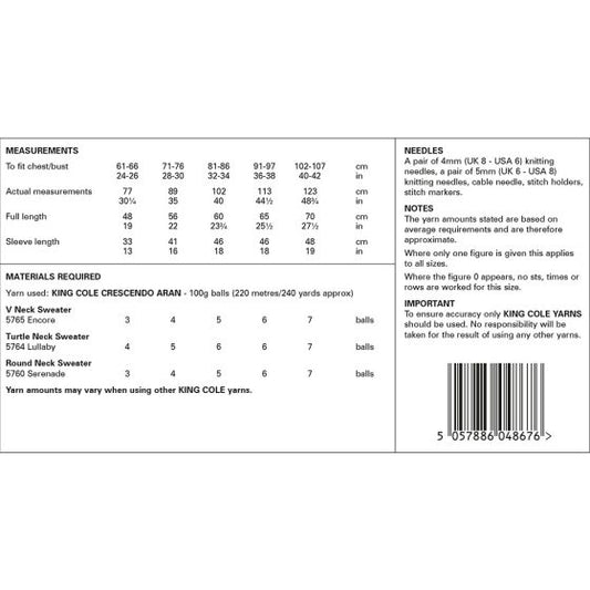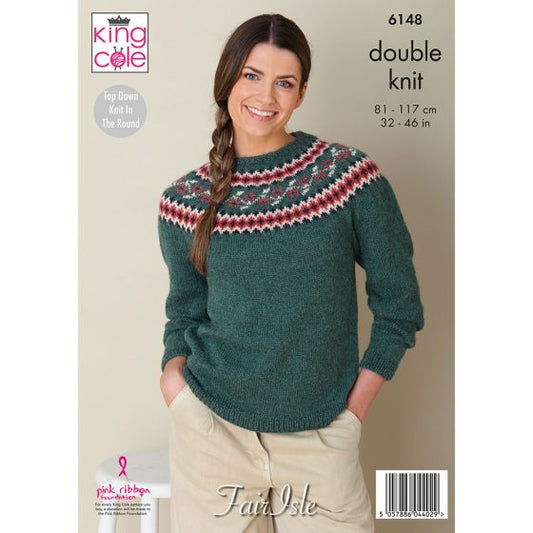 King Cole Knitting Pattern 6148 Top Down Knitted in The Round