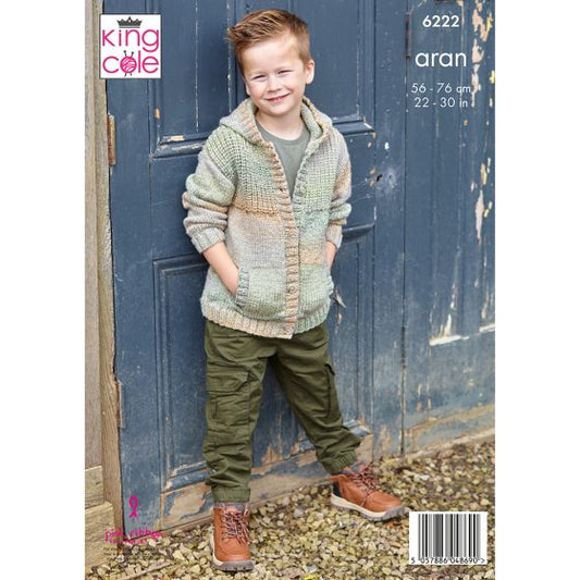 King Cole Knitting Pattern 6222 Childs Jacket and Hooded Sweater - Aran