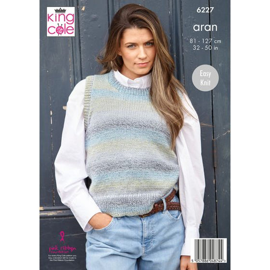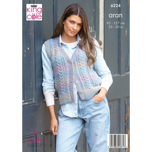 King Cole Knitting Pattern 6227 Ladies Carigan and Vest - Aran