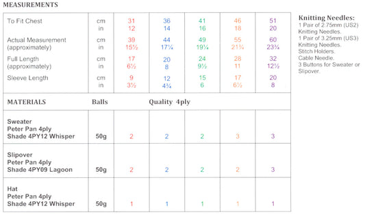Wendy Peter Pan PP025 Baby Sweater, Slipover and Hat - 4ply