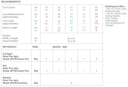 Wendy Peter Pan Baby Cardigan, Hat and Blanket 4Ply