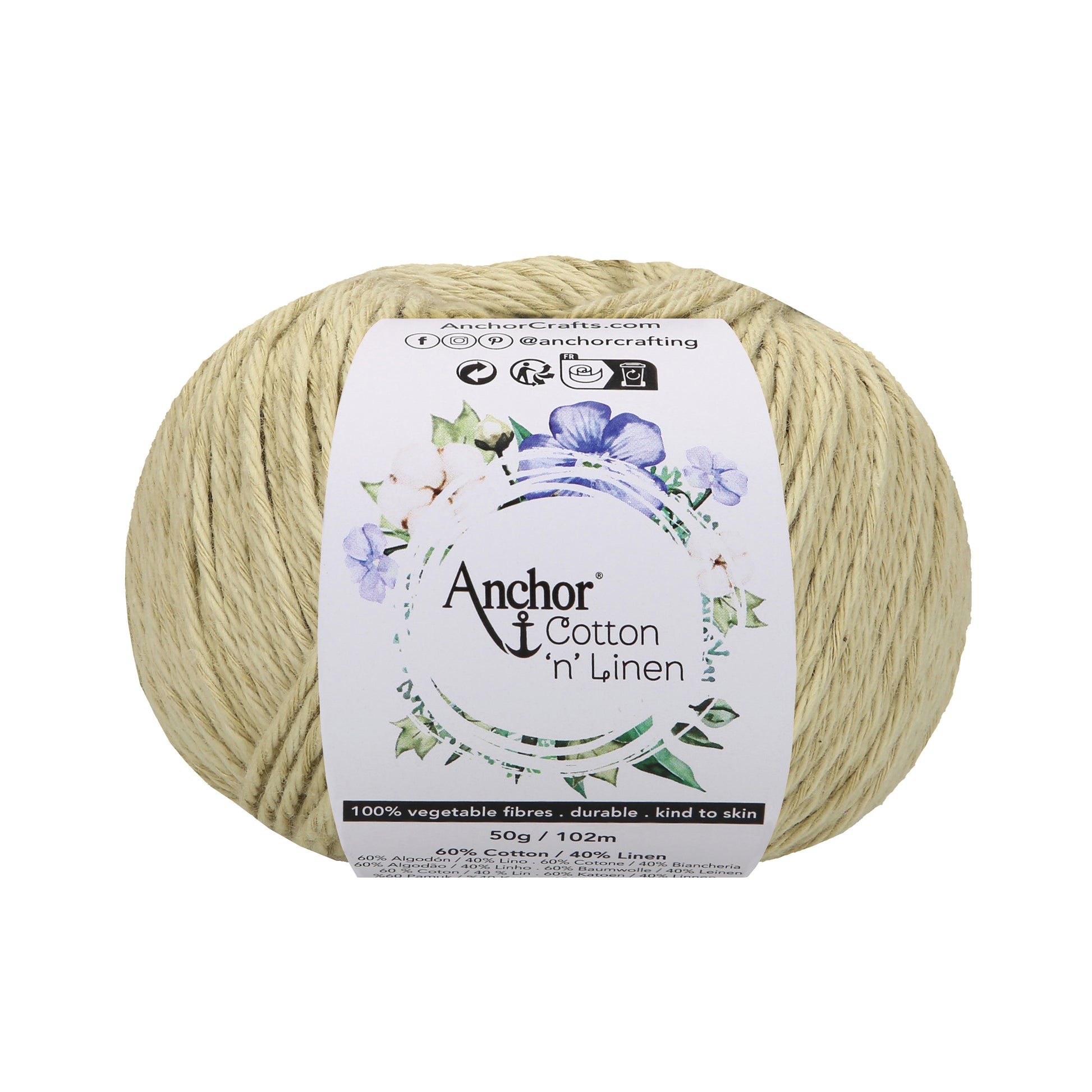 - Anchor Cotton 'n' linen yarn is made from 100% natural vegetable based fibres, combining a rich blend of 60% cotton and 40% high-quality linen. ?