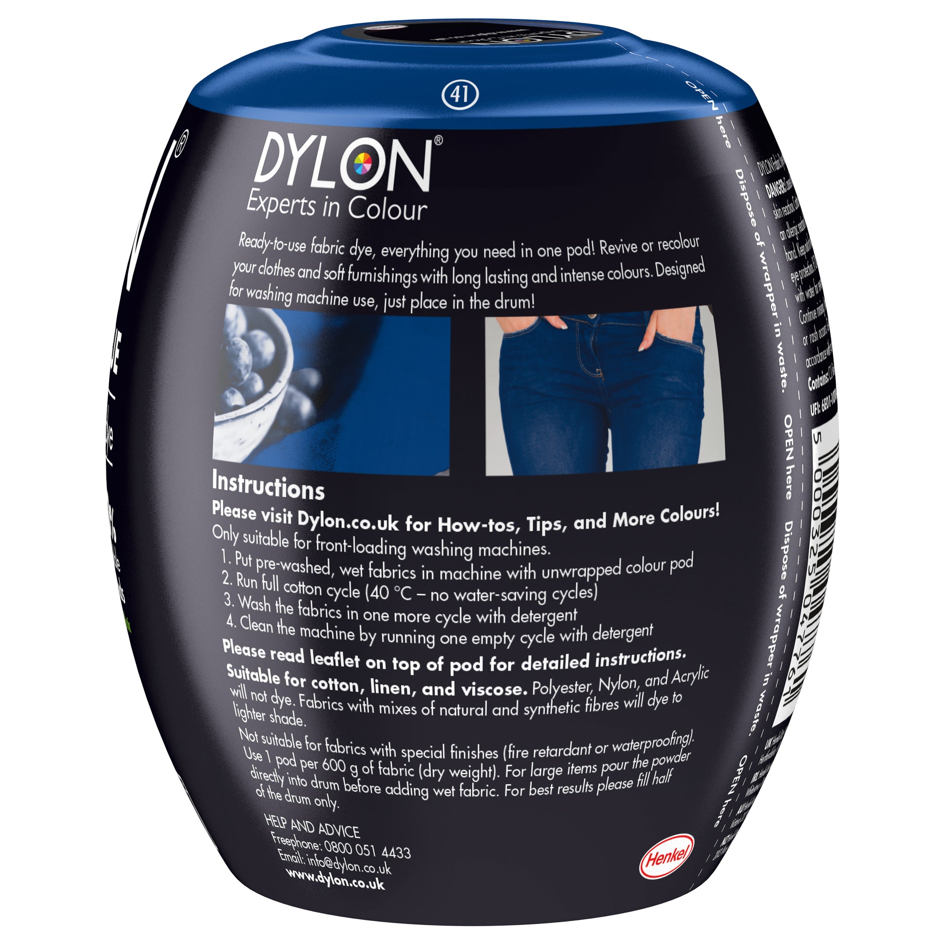 Dylon fabric dyes are easy to use and completely safe for your washing machine. The all-in1 formula revives or transforms the colour of your clothes and soft furnishings, providing long lasting and intense colour. Suitable for: cotton, linen & viscose. Mixes with synthetics will dye to lighter shades (pure synthetics will not dye). One pack dyes 600g of fabric to full shade, up to 1.8kg to lighter shades. No wardrobe is complete without a classic pair of good fitting jeans. In case you want to bring them back to life, use Jeans Blue for a fresh injection of colour. Recycled packaging.