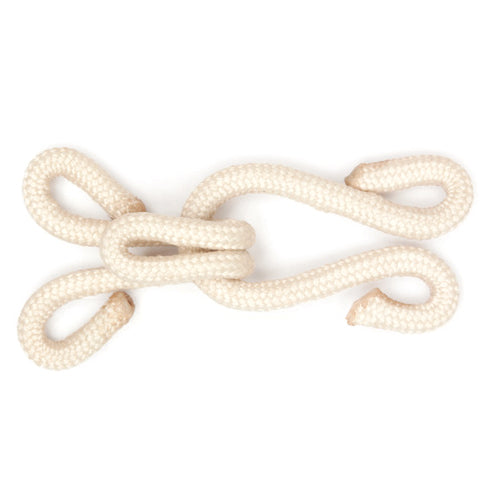 Fabric covered hooks and eyes used as decorative fastenings on garments, especially outerwear and coats. Fasteners lie flat and provide a strong closure. 3 sets supplied in a reusable plastic box.